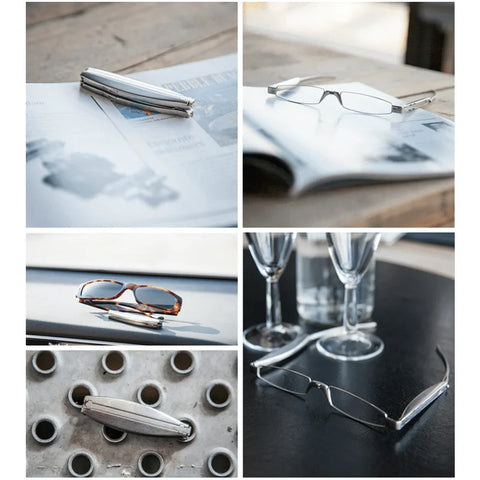 After repeatedly been confronted with the question why glasses have to be so inconvenient. industrial designer created the first fashionable foldable pocket glasses. The folding mechanism is such that a separate outercasing for preventing the glasses from scratches is not necessary.
